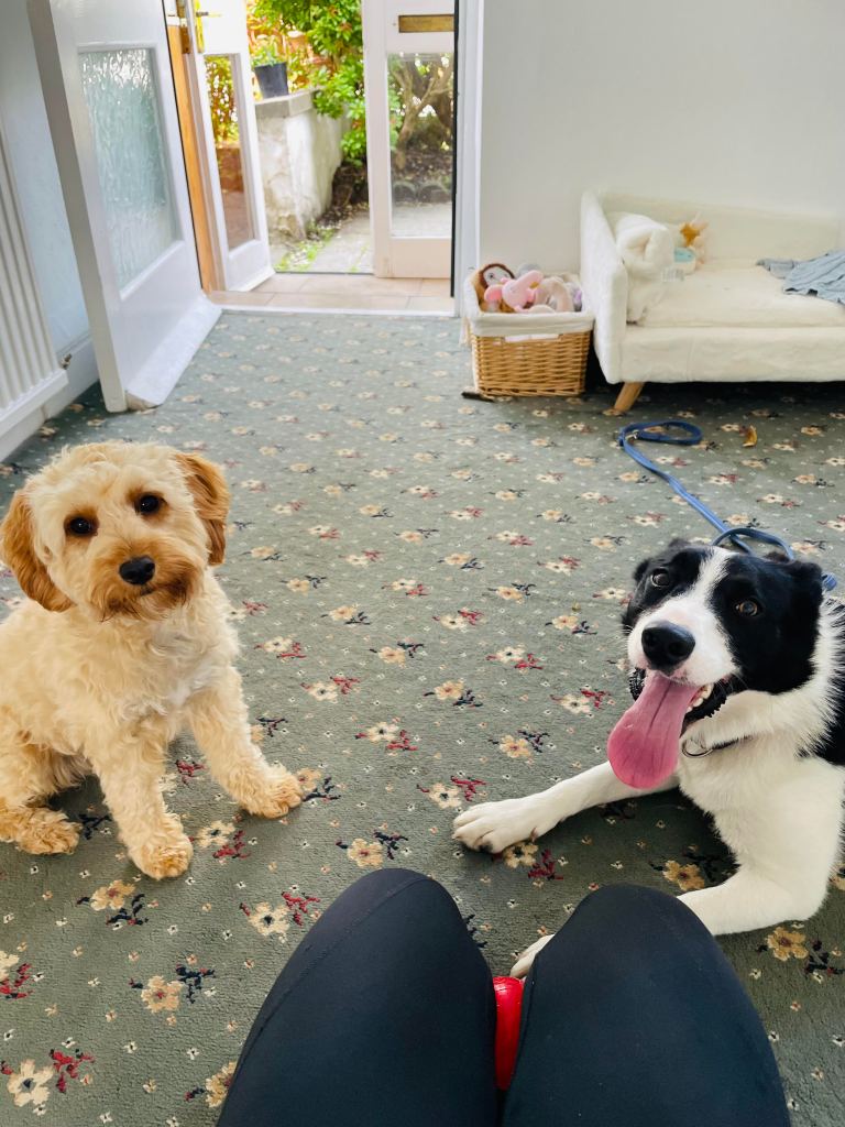 And then there was Isla the very sweet Border Collie who came into our house with very high energy and laser-focus on fetching the ball. We only had her for an hour, in which time we played with the ball on repeat. Amber loves this game but she knew she wouldn’t have a chance to get it. Isla was just so fast and so skilled at jumping up and catching it in the air, then diligently coming back to me and placing it in my hand. Amber chose to nibble on her Yak instead and just watch the show.